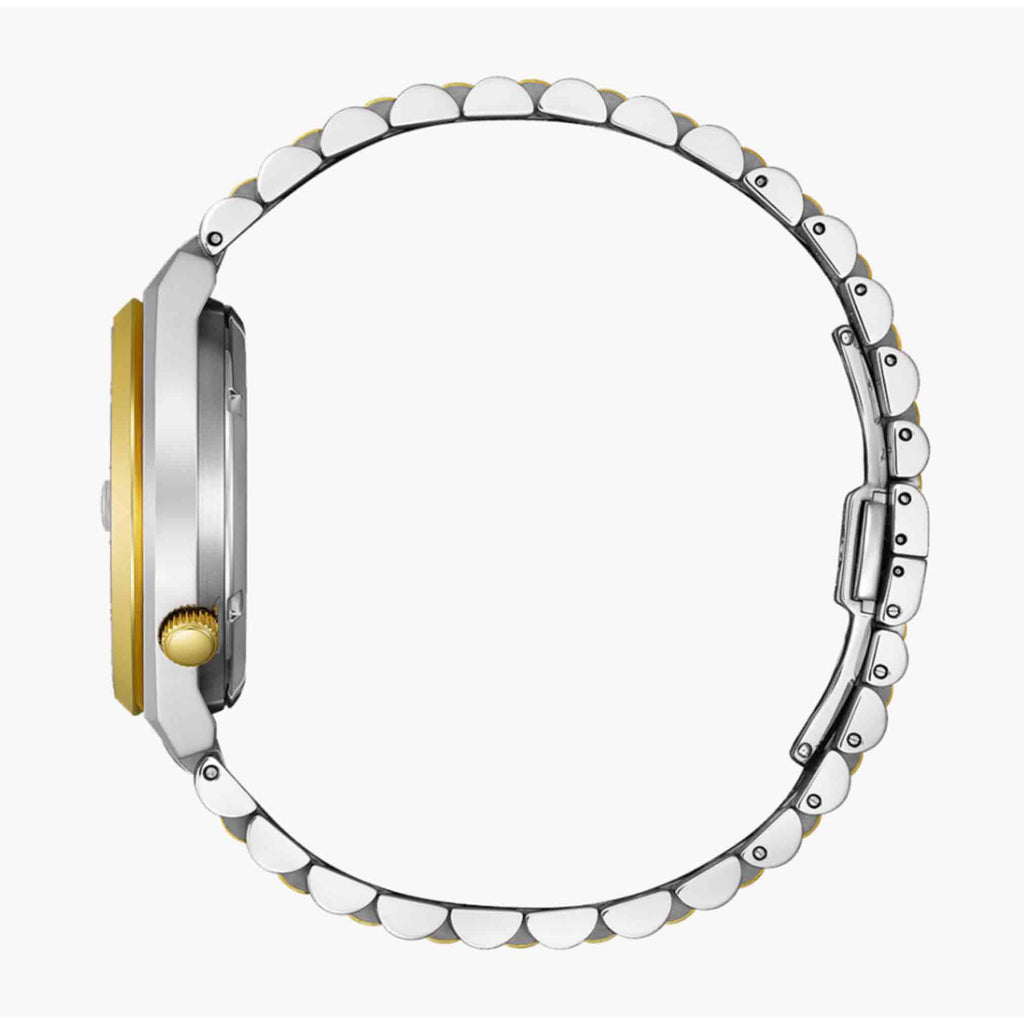 Il Citizen Tsuyosa 60 Automatico NK0024-54X è un piccolo motore meccanico da polso, elegante e concreto. Al suo interno batte il calibro 8310, un movimento automatico con 21 rubini, frequenza di 21.600 A/h e una generosa riserva di carica di 60 ore, pensata per accompagnarti anche quando lo lasci a riposo per un weekend.La cassa in acciaio inox bicolore da 40 mm unisce sportività e raffinatezza, con uno spessore di 11,7 mm e la caratteristica corona alle ore 4, che aumenta il comfort al polso.Il quadrante verde a finitura guilloché cattura la luce, mentre il vetro zaffiro protegge il tutto e offre una lente sul datario.Il fondello trasparente rivela il movimento in azione, mentre il bracciale jubilee bicolore completa un look deciso e moderno.