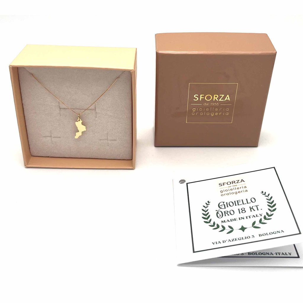 Ciondolo con fedele riproduzione della regione Calabria in oro giallo con catena tipo veneziana in oro giallo tutto a titolo 750°°° certificato.