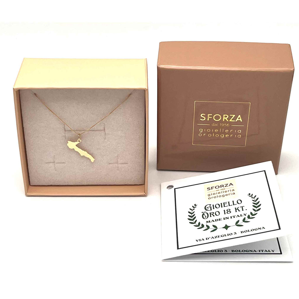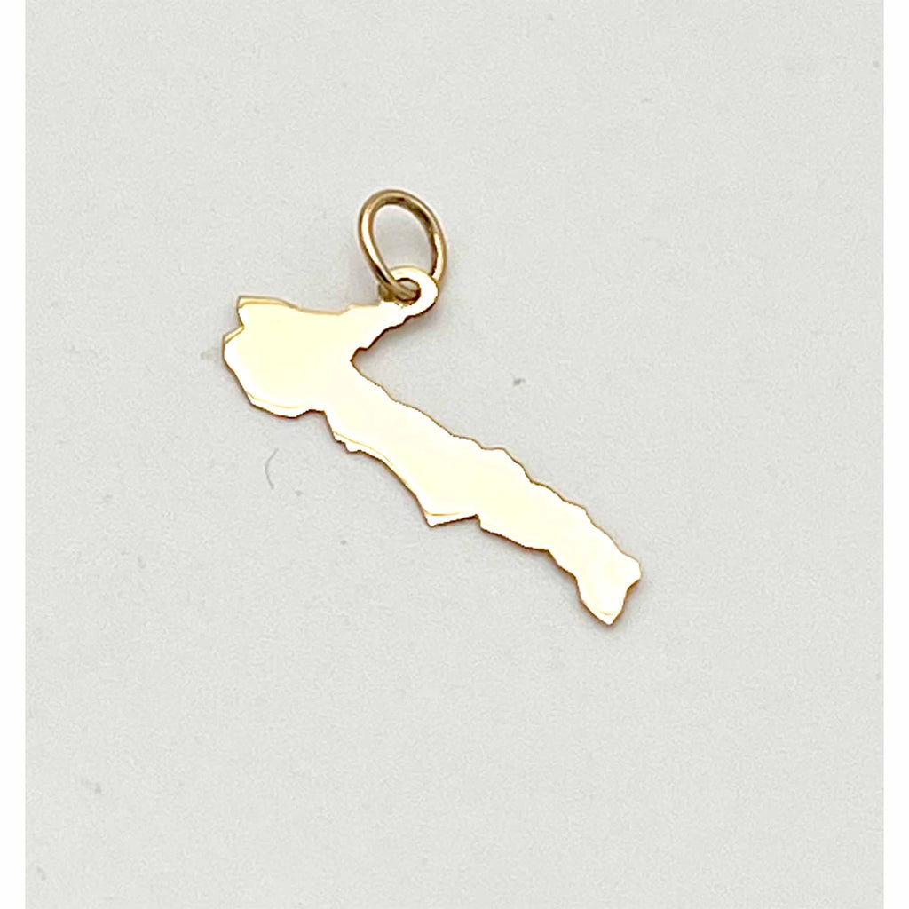 Ciondolo con fedele riproduzione della regiona Puglia in oro giallo con catena tipo veneziana in oro giallo tutto a titolo 750°°° (18 kt.) certificato.