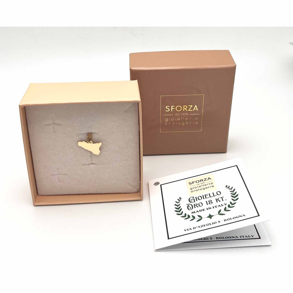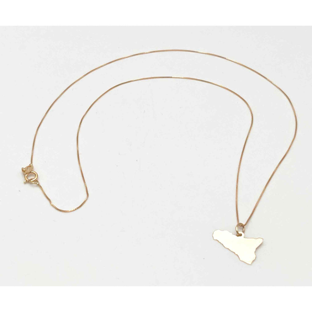 Ciondolo con fedele riproduzione della regione Sicilia in oro giallo con catena tipo veneziana in oro giallo tutto a titolo 750°°° certificato.