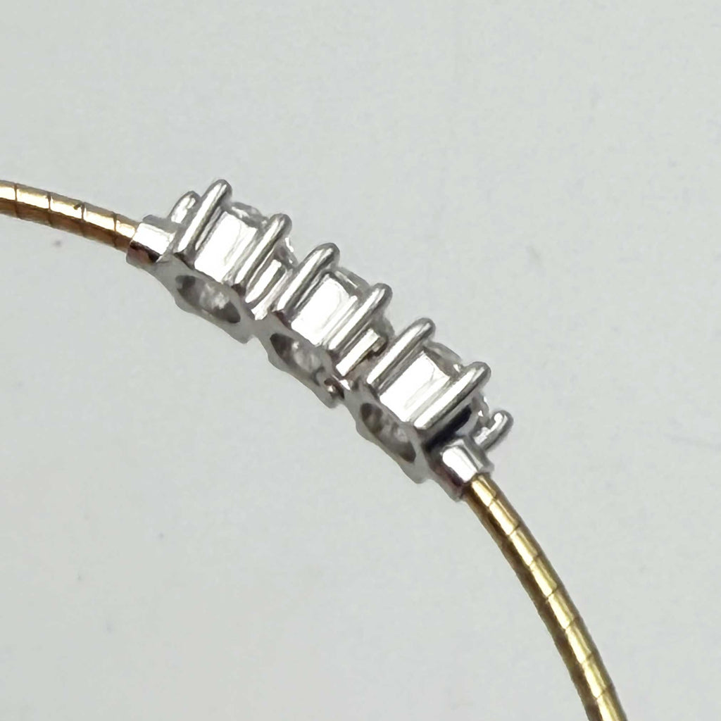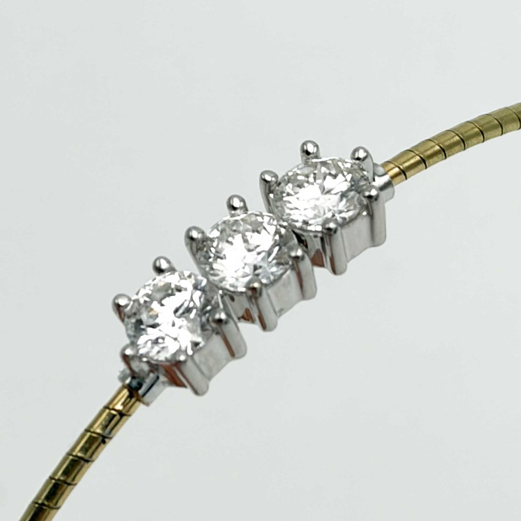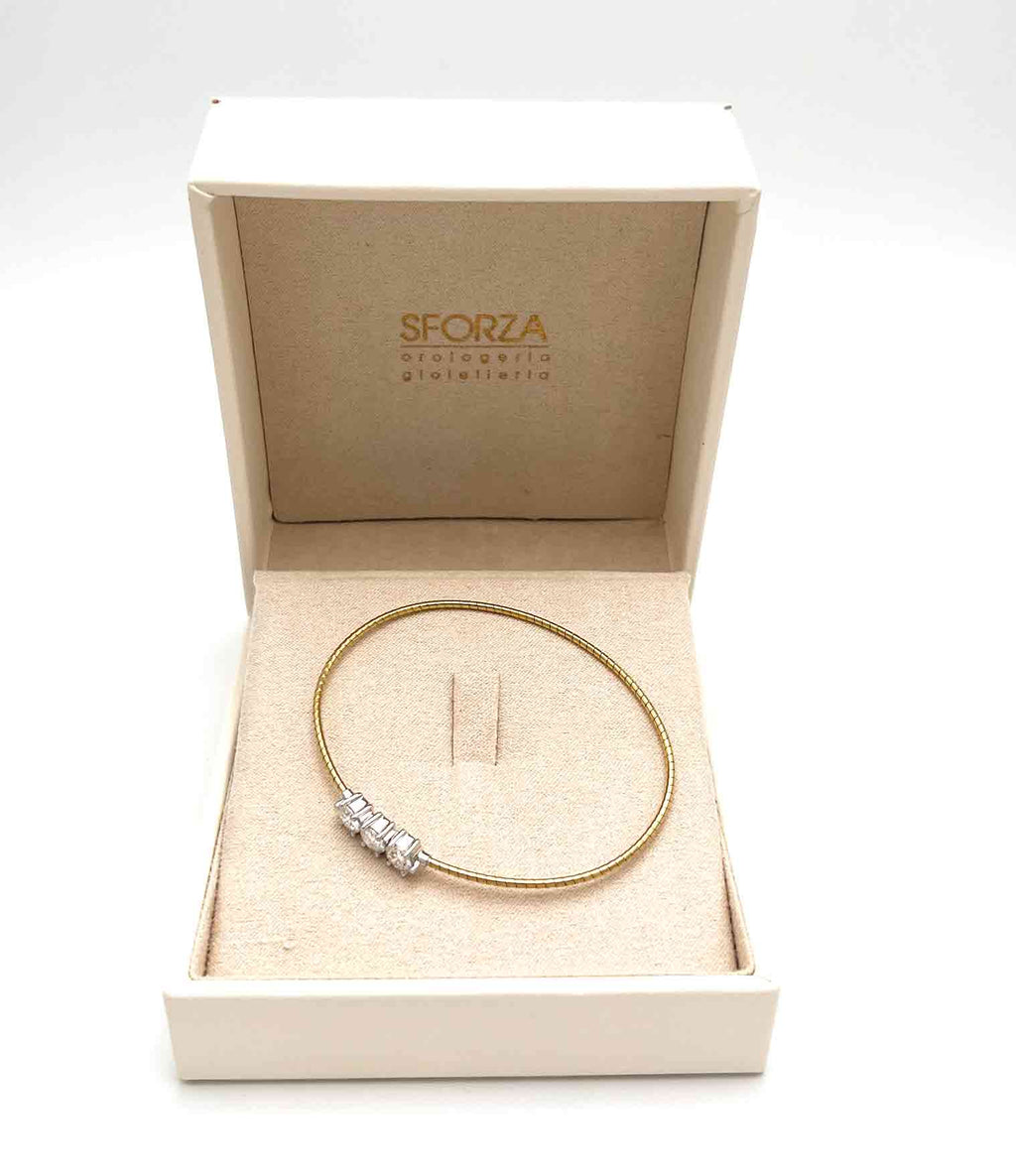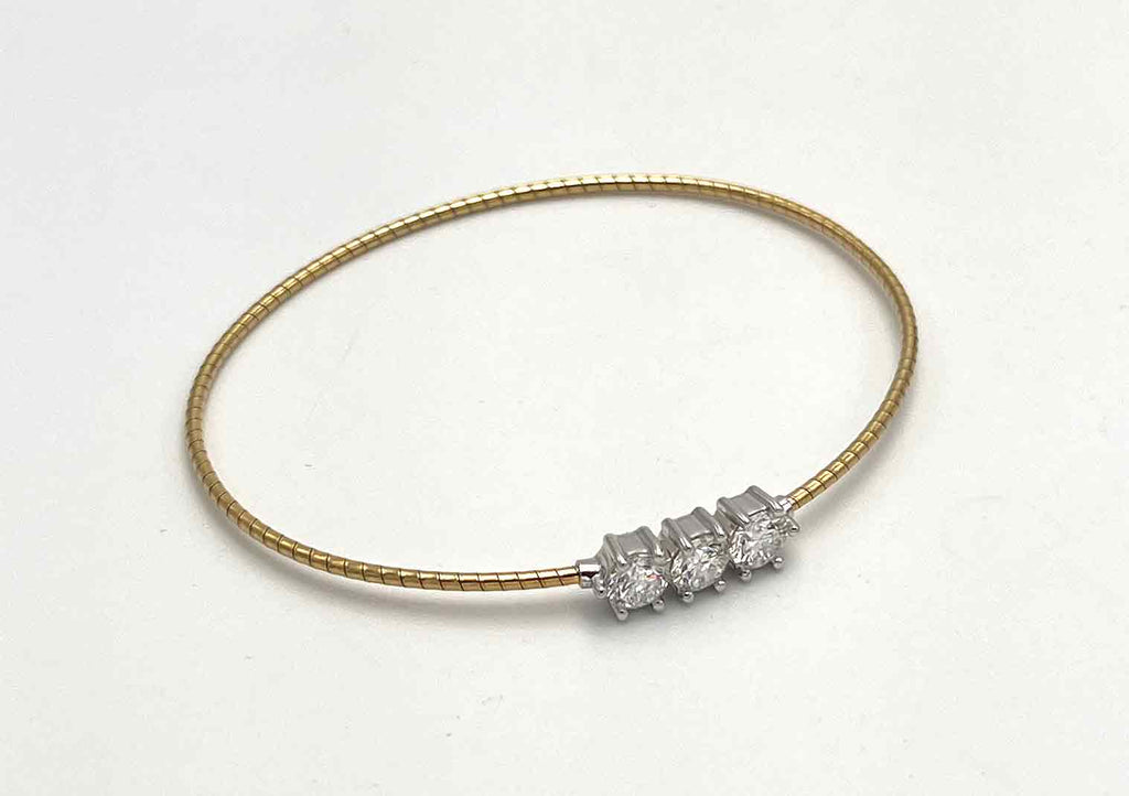 Splendido bracciale in oro 750°°° giallo per gr. 5,34 adatto a ad un polso medio di donna su cui sono incassato 3 splendidi diamanti a taglio brillante Lab Grown per ct. 0,50 l'uno per complessivi 1,5 ct. colore F purezza VS. La dimensione di ogni castone con il diamante è 6,5 mm. di diametro. Bracciale semirigido con pratica e sicura chiusra a perno tra il secondo e terzo diamante, come illustrato nelle immagini.